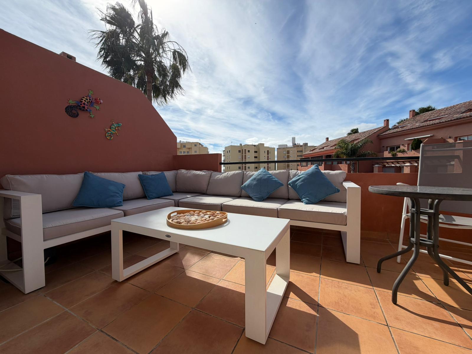 Just 300 metres away is Estepona Marina, with its charming fishing port, a wide selection of bars and restaurants, and a lively Sunday market. A scenic seaside walk leads you into the old town, passing along the shoreline and the newly built Torre del Carmen, home to a stunning sky bar offering spectacular views over the town and surrounding area.