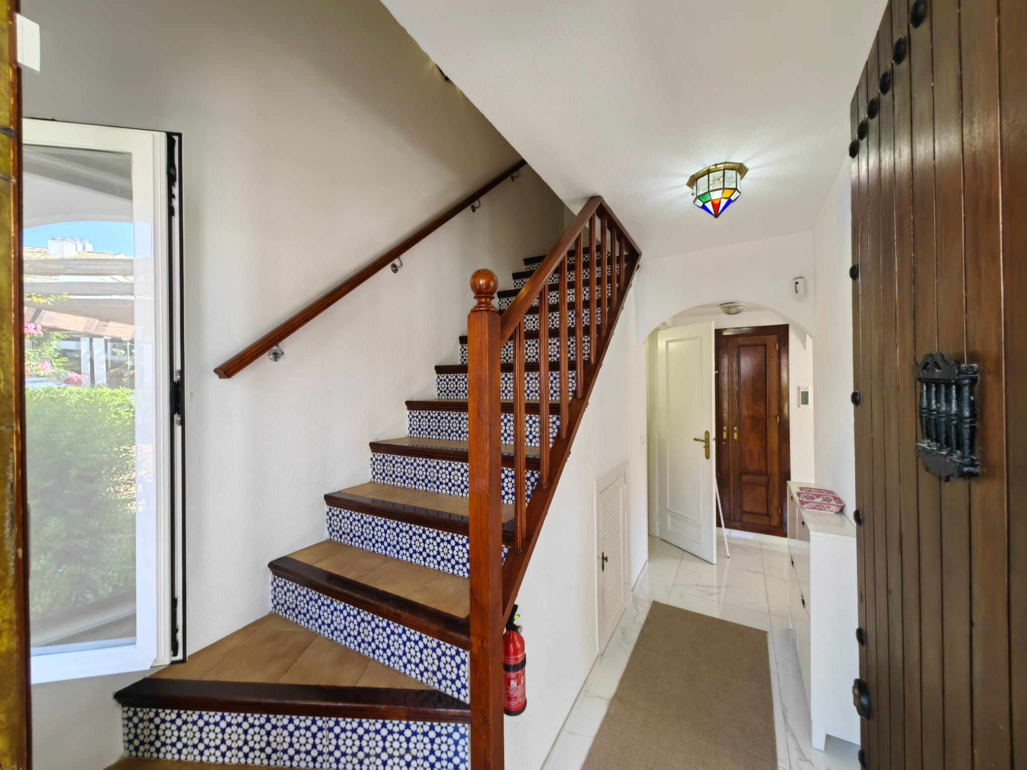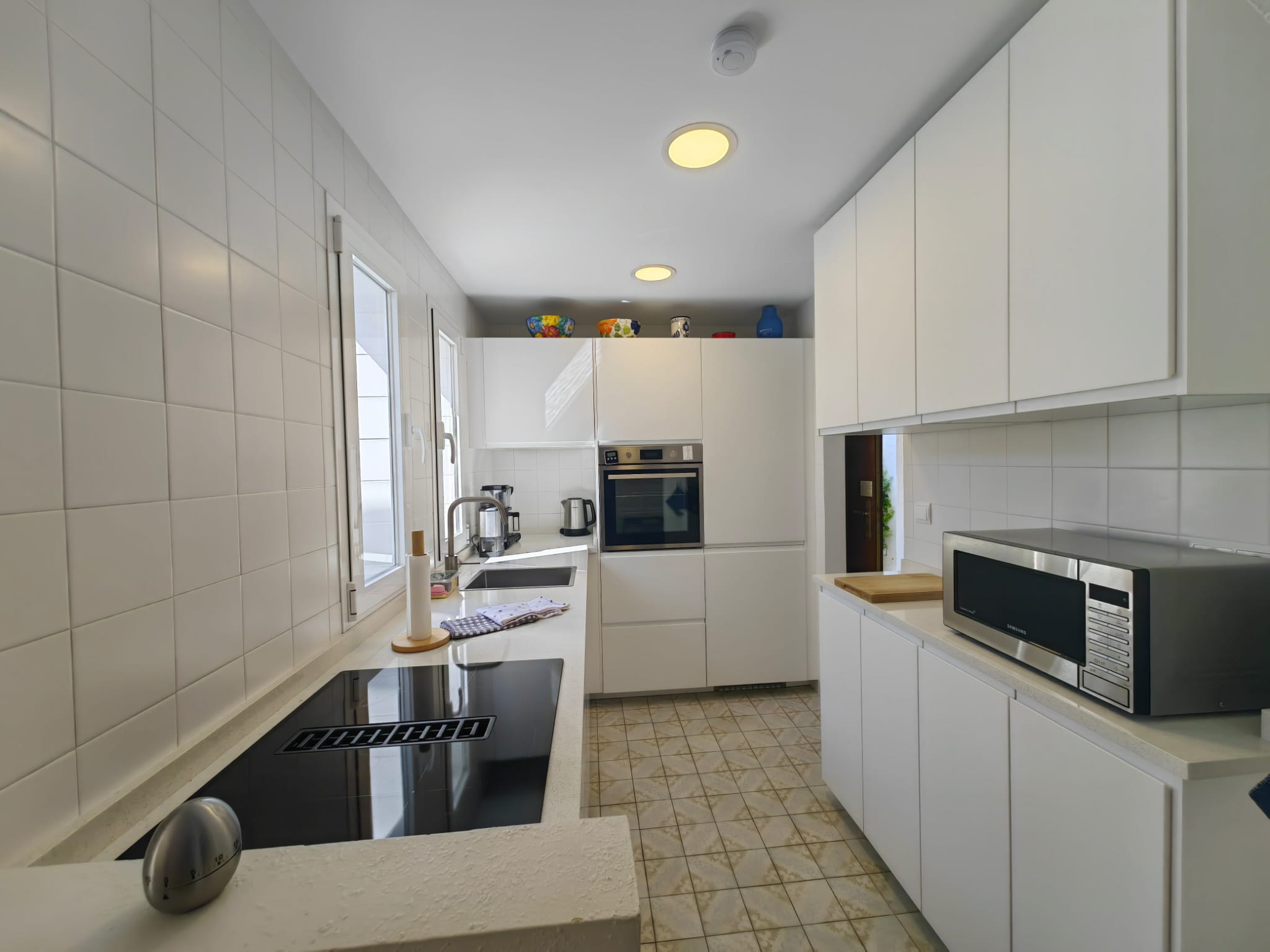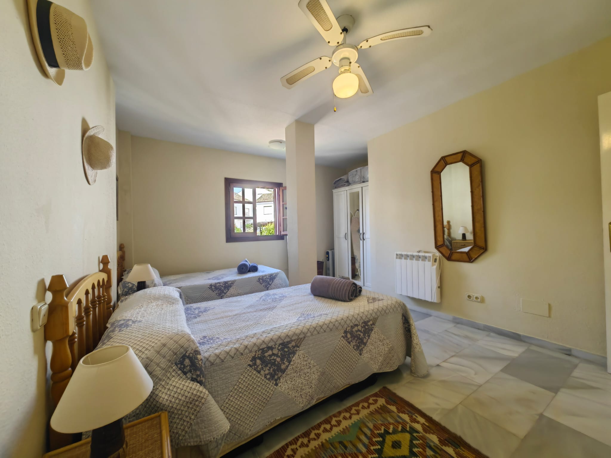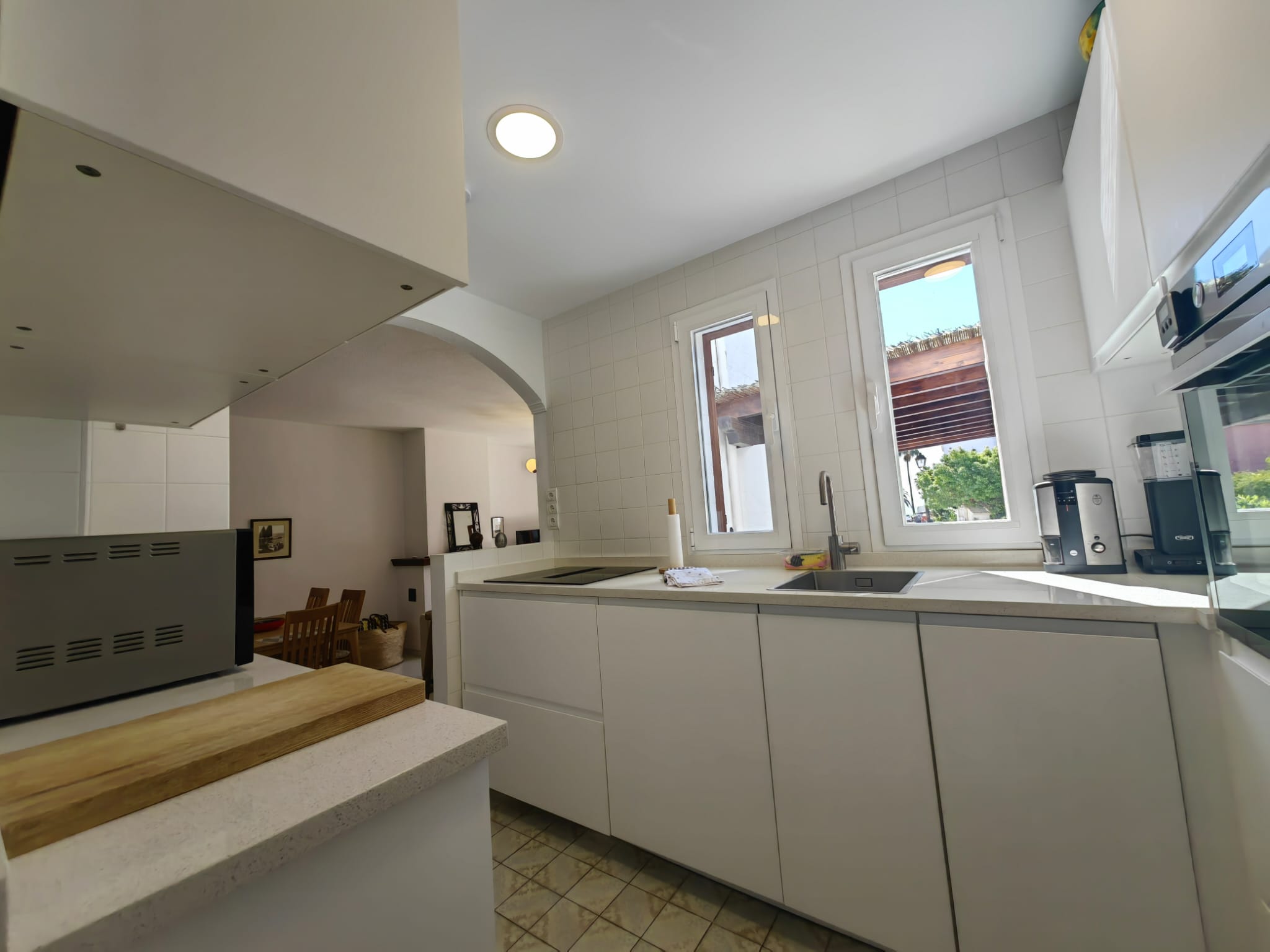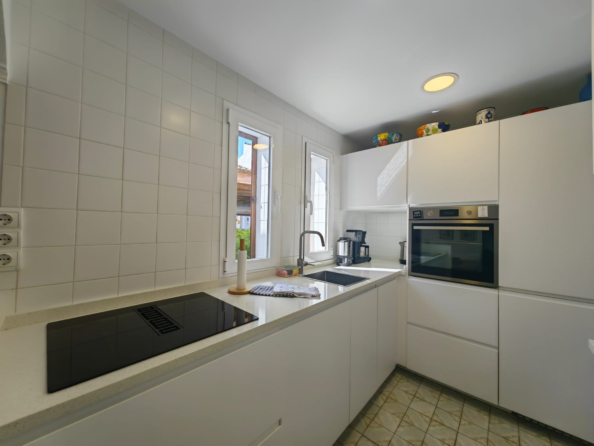 This tastefully furnished & Spanish-style home features two comfortable double bedrooms and two bathrooms upstairs. From the master bedroom there is a small terrace for privacy with a lovely view to the sea. Downstairs, you will find a cosy open-plan lounge and a spacious, modern kitchen.